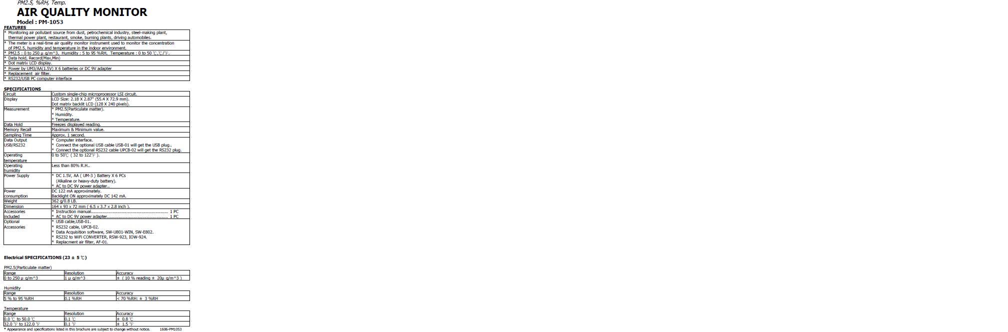 Product Name : | PM2.5, %RH, Temp., RS232/USB AIR QUALITY MONITOR/RECORDER |