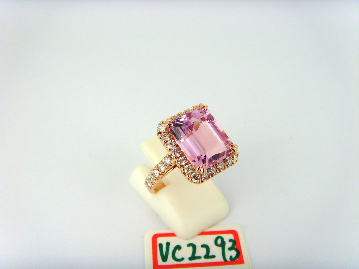 18K rose gold diamond kunzite ring