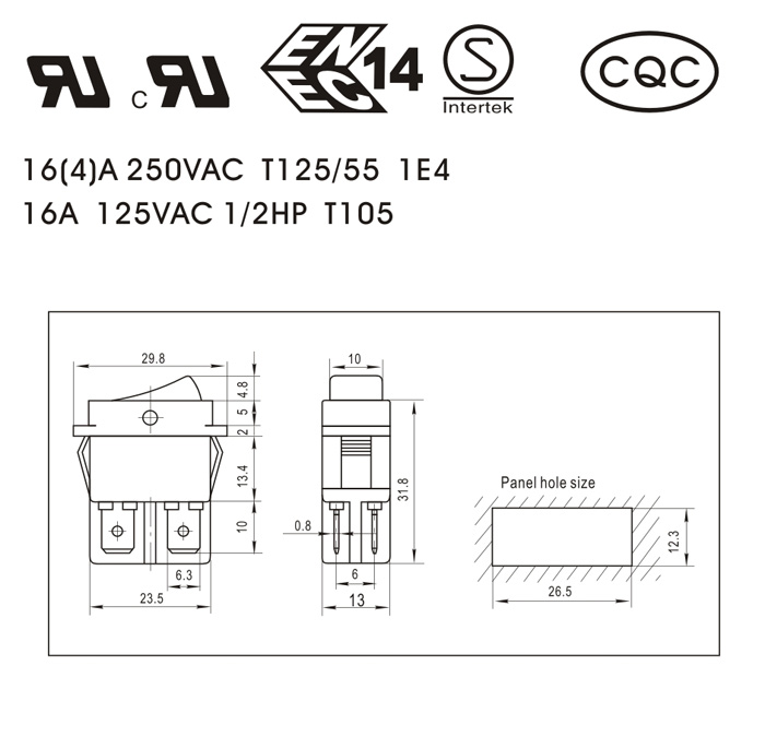 16A 125VAC 1/2HP T105