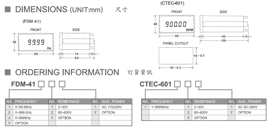 Product Name : (FDM-41 / CTEC601) 4位數(5位數)頻率量測電錶