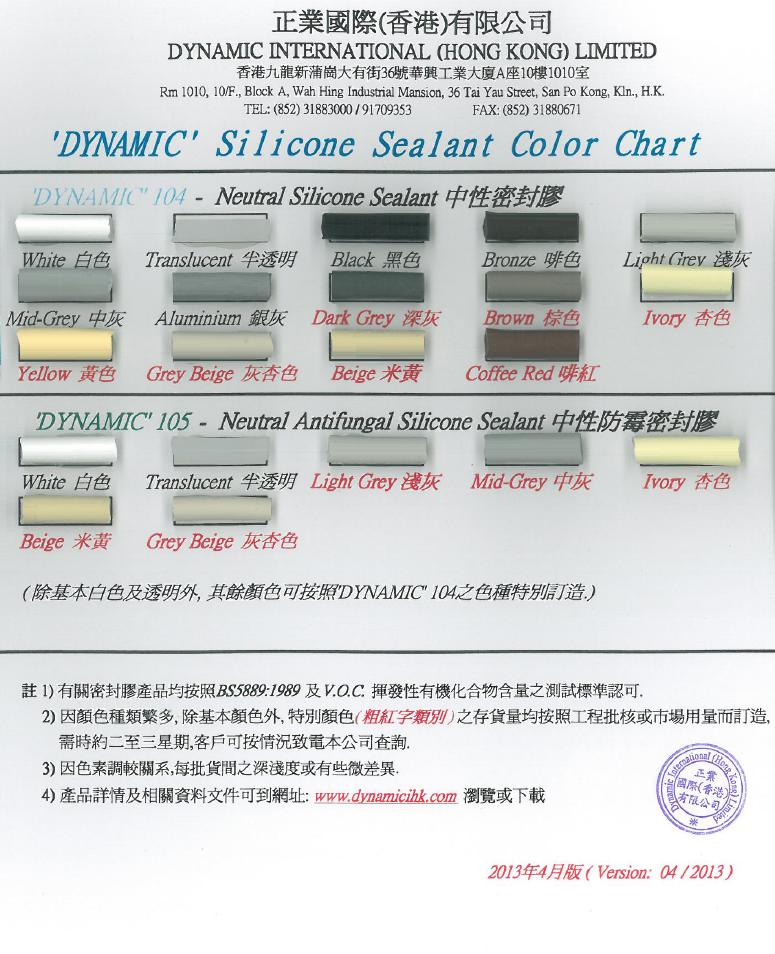 下載有關 104 中性密封膠 & 105 中性防霉密封膠 色板 資料 :