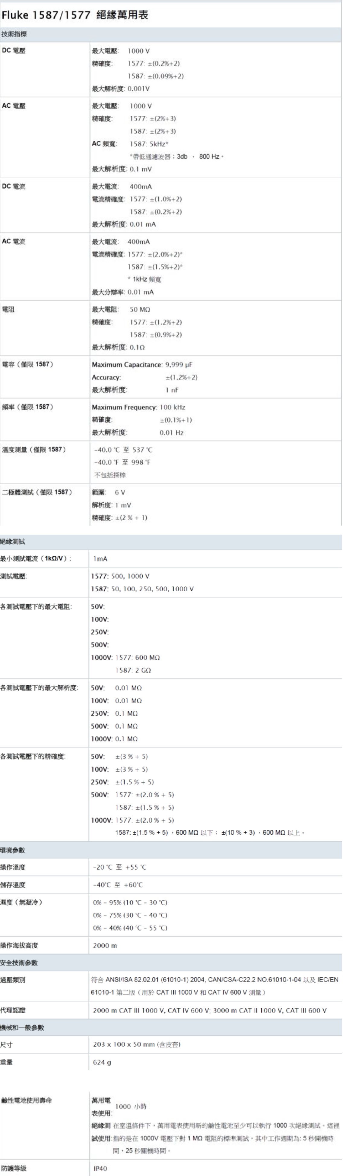Product Name : Fluke 1587/1577 絕緣萬用表