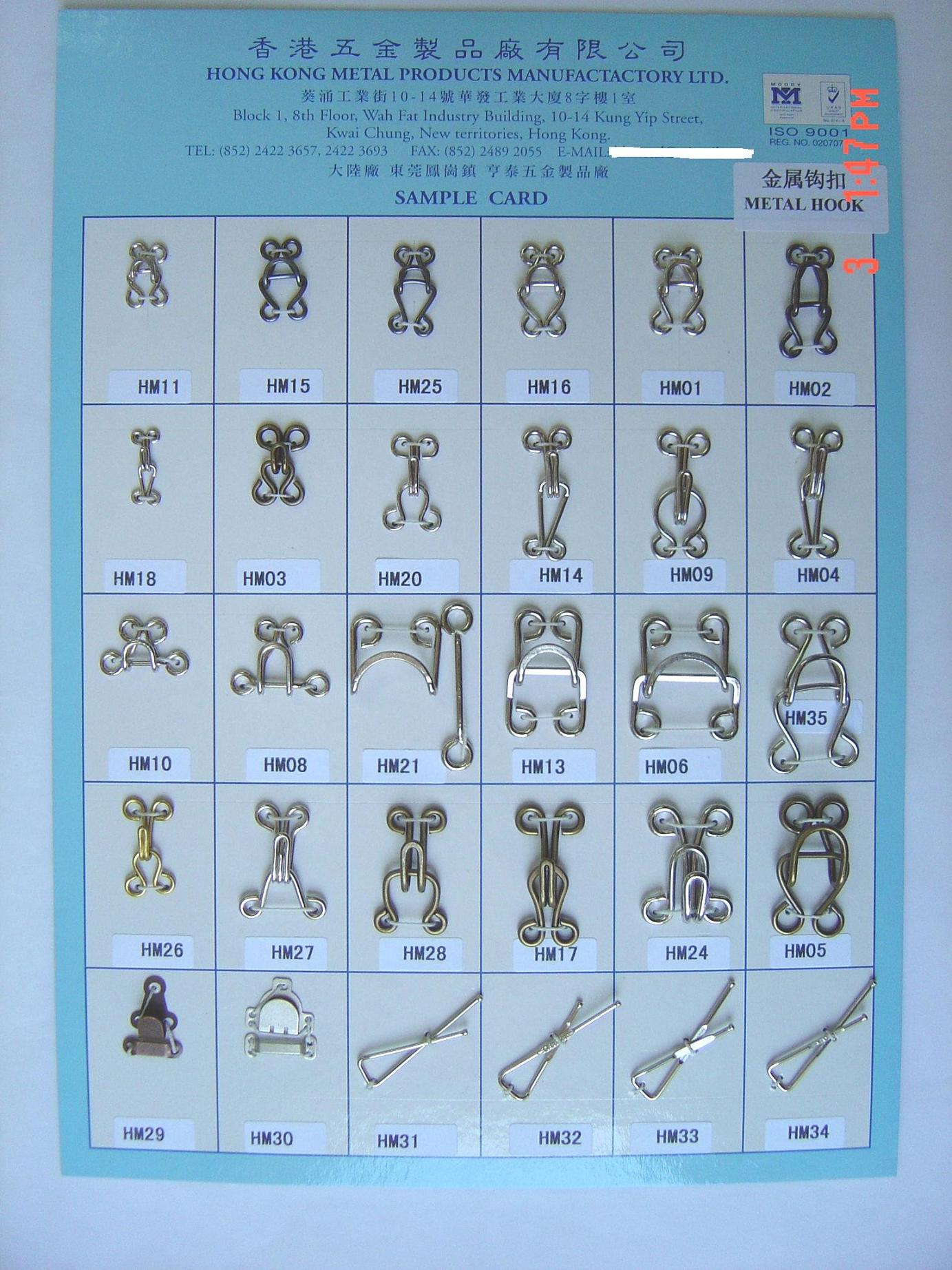 | Contact Details : | 香港五金製品廠有限公司 Hong Kong Metal Products Mfy. Ltd . . . . .東莞市駿雅鈕扣有限公司 Dong Guan Junya Matel Button Co., Ltd. | |