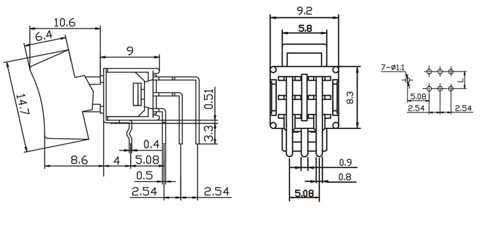 TOGGLE SWITCH (SUB-MINIATURE ROCKER N LEVER HANDLE) 超小型擺臂鈕子開關
