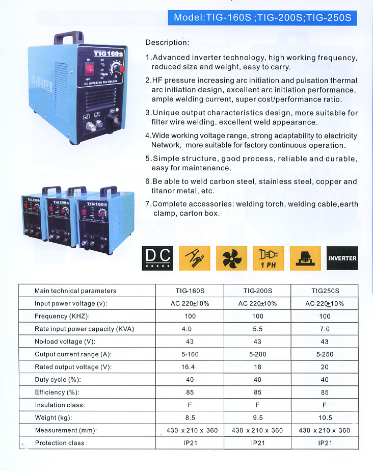 Product Code : TIG-160S,TIG-200S,TIG-250S