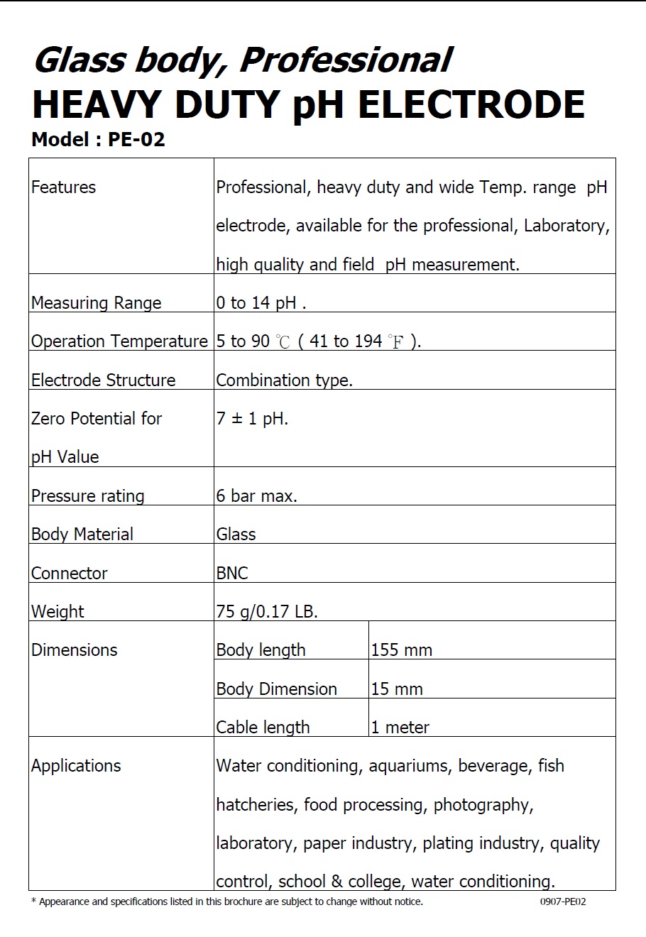 Product Name : | glass body HEAVY DUTY pH ELECTRODE - PE-02 - PH電極探頭 |