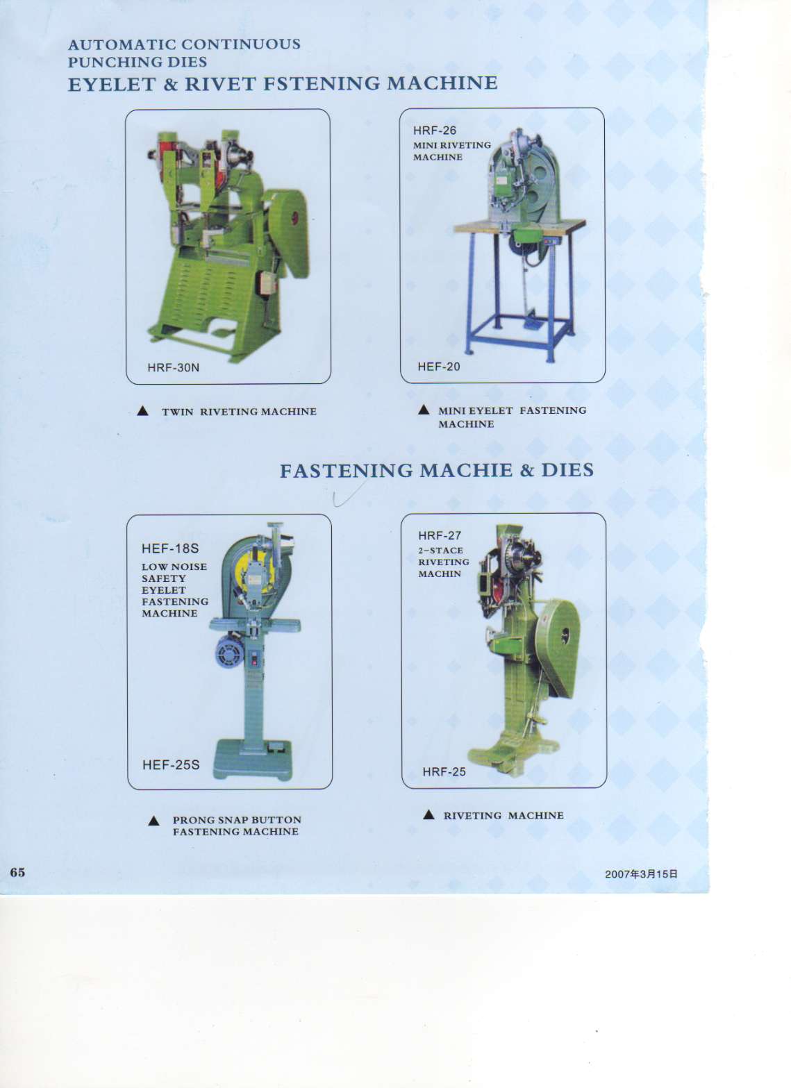 | Product Category : | Eyelet & Rivet Fastening Machine | |