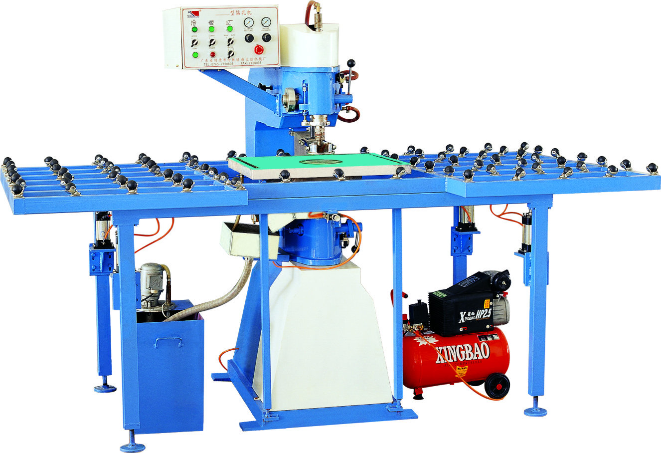 XZ220-Glass Drilling Machine is suitable for drilling/feeding glasses in different thickness. Pneumatic mechanism is used to clamp glasses. And the upper and lower aiguilles are drilling/ feeding by turn. The automatic operation is easy and convenient. It has a high efficiency which can work in batch. It is equipped with a pneumatic table which supports large size glasses, the function is excellent.